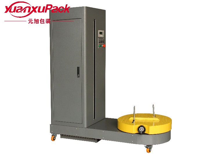 行李型缠绕机是专为机场包装行李等而设计的,在行李运输过程中起到保护的作用,防止破损,防止行李被调换等现象。设备可以移动,操作人员将行李放到转台上,并根据行李的大小来调节垂直杆的,从而使行李可以平稳的放在转台上。然后操作人员按操作面板上的启动按钮,设备自动进行包装,一般行李包3—5层即可!包装完毕后,操作人员手工切断薄膜,然后取走行李!