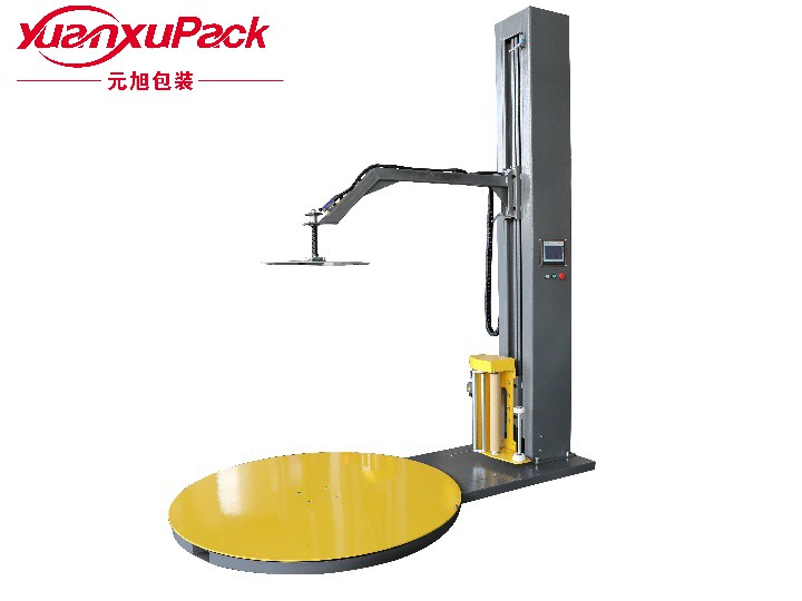 压顶型缠绕机应用于单件较轻货物或多件较轻小型货物组合的缠绕包装。设备上方装有圆盘,在包装过程对产品进行压顶,保证产品不会出现移位和倒塌。能够提高物流效率、减少装运过程中的损耗,具有防尘、防潮、降低包装成本等优点。目前压顶型缠绕机有电压顶和气压顶两种,客户可以根据自己实际情况进行选择。