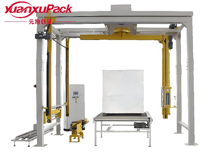 PLC可编程控制,缠绕程序可选,各种参数可调。光电开关自动感测货物高度。醒目的闪光安全警告灯及紧急停机开关。预拉伸自动送膜机构。悬臂缓启动、缓停止,自动复位。顶部及底部缠绕数分别单独控制。